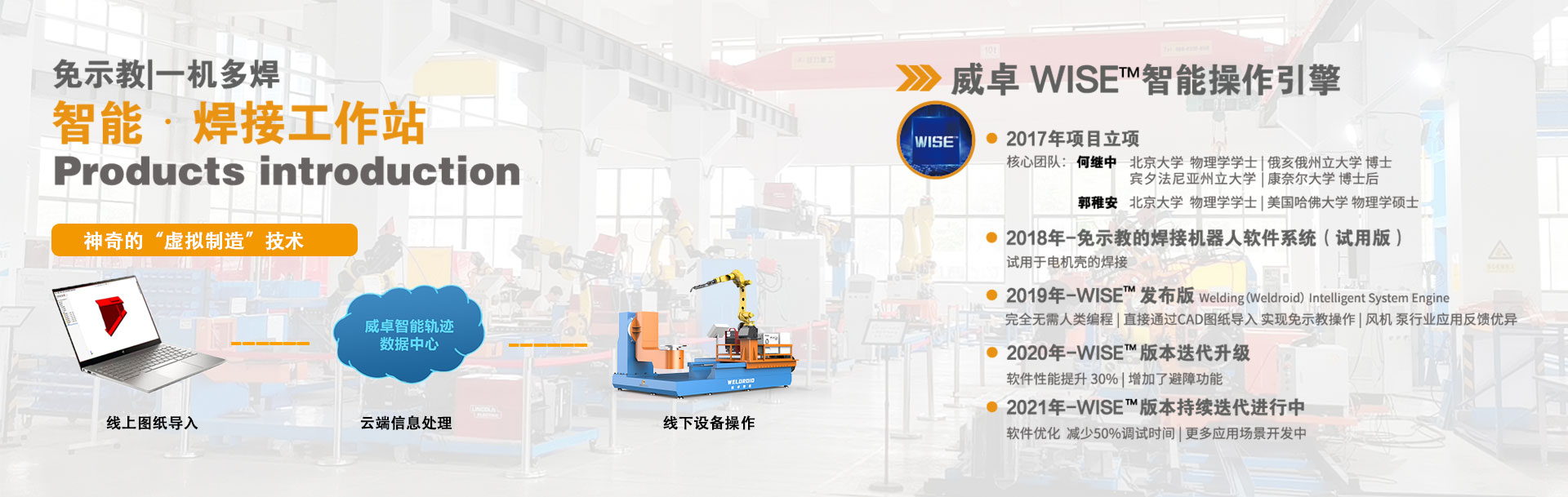 立即咨詢 現(xiàn)在聯(lián)系我們:0510-85384033無錫威卓智能機器人有限公司成立于2017年,是無錫市政府引進的科技領軍型高新技術企業(yè),公司研發(fā)團隊80余人,我們堅持自主創(chuàng)新,利用自主開發(fā)的虛擬制造技術對傳統(tǒng)焊接行業(yè)進行升級改造。 公司主推的工業(yè)風機系列-智能焊接工作站產(chǎn)品,具有免示教、實時跟蹤、簡易工裝、傻瓜式操作等優(yōu)點,真正幫助企業(yè)解決了招焊工難,用工成本高,焊接質(zhì)量不穩(wěn)定等問題。